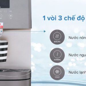 Thiết lập 3 chế độ nước nóng, nước thường và lạnh, với nhiệt độ làm nóng đạt 85 – 95°C, nhiệt độ làm lạnh từ 5 – 10°C (theo điều kiện tiêu chuẩn)