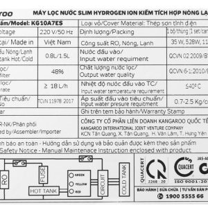 – Nguồn nước sử dụng cho máy lọc nước Kangaroo phải là nước thủy cục đạt tiêu chuẩn QCVN 02:2009/BYT.