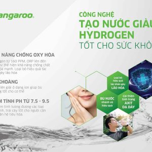 – Duy nhất Kangaroo có bằng sáng chế độc quyền thiết bị lọc nước Hydrogen. Nước Hydrogen tươi bổ sung vi khoáng tự nhiên và chất điện giải có lợi, giúp tăng cường miễn dịch và nước có vị ngon tự nhiên. Đồng thời hoạt động như một chất chống oxy giúp loại bỏ gốc tự do có hại gây lão hóa, các bệnh dạ dày…
