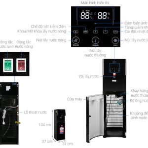 Bảng điều khiển nút nhấn điện tử với 3 chế độ cấp nước: nước thông thường, nước nóng và lạnh với nhiệt độ nước nóng đạt 85 – 95°C và nhiệt độ nước lạnh 5 – 10°C (theo điều kiện tiêu chuẩn)
